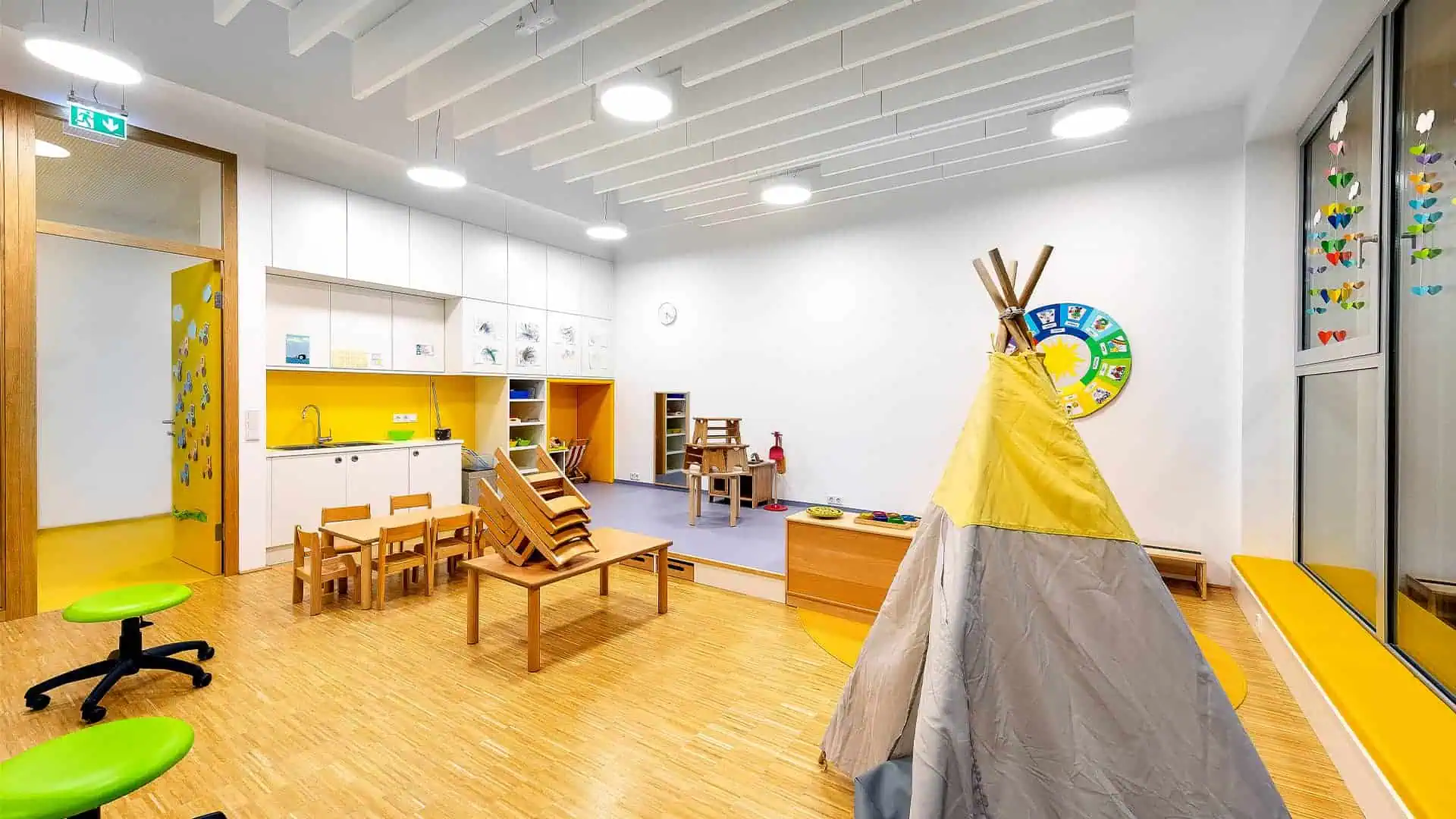 Besonders hervorzuheben ist die stilvolle Beleuchtung der Außenanlagen – inklusive der benachbarten Pfarrkirche. Sie sorgt für Sicherheit und setzt abends architektonische Akzente.