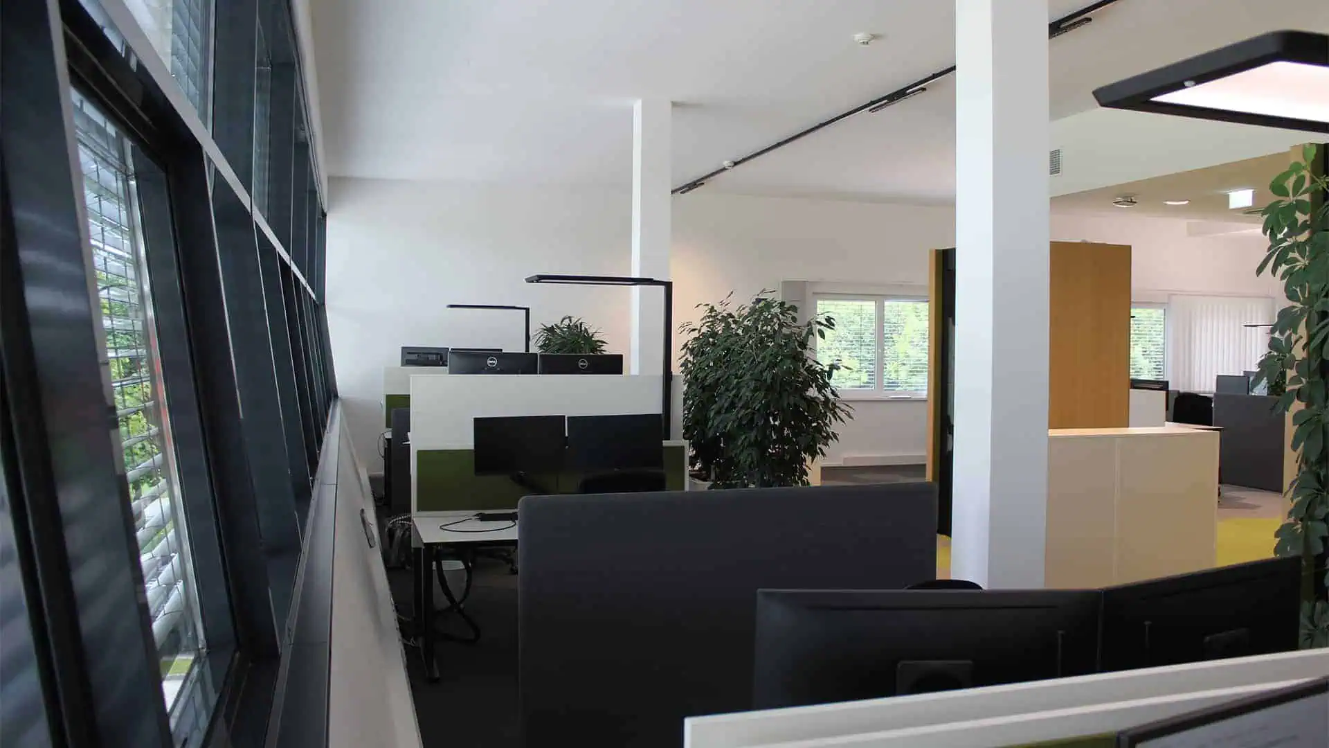 Beim Umbau des Greiner Packaging International Headquarters modernisierten wir Beleuchtung, Notlicht, Brandmeldesysteme und KNX-gesteuerte Technik.
