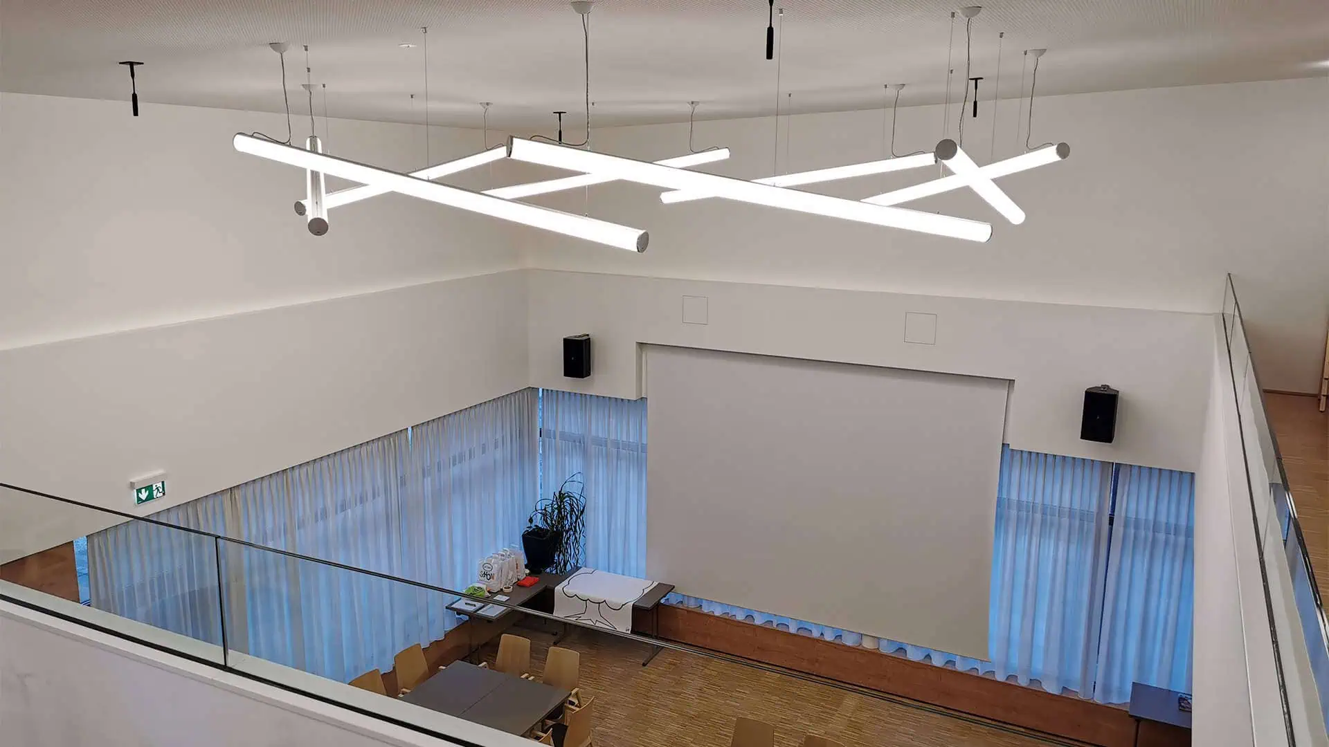 Alle Bereiche des neuen Gemeindezentrums – von Eingangsbereichen bis zu Arbeitsplätzen – erhielten ein durchdachtes Beleuchtungskonzept mit hoher Energieeffizienz und klarer Funktionalität.