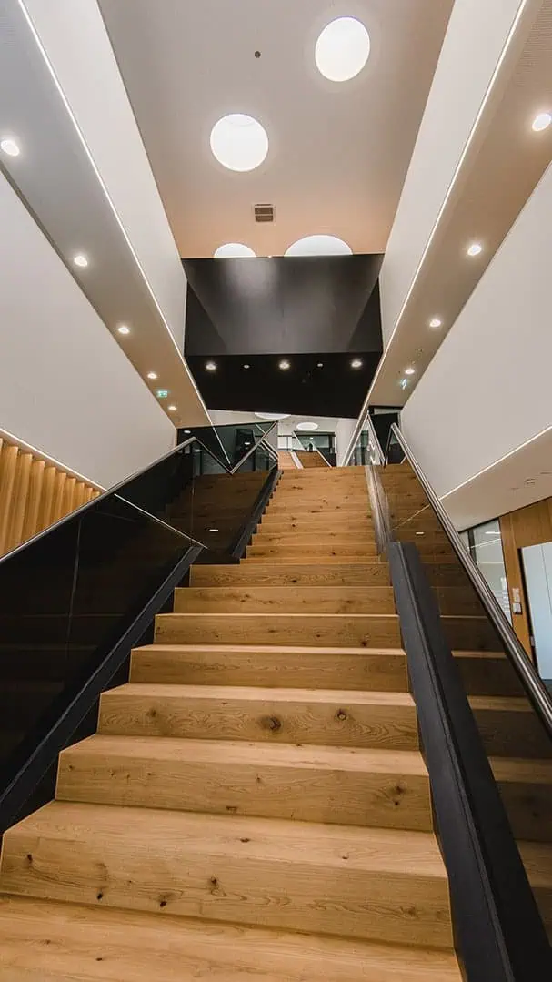 Mit dem Neubau von Office und Next Generation wurde das Greiner Headquarter in Kremsmünster zu einem modernen Campus erweitert. Kremsmair übernahm die gesamte Elektroinstallation – inklusive KNX-System, LED-Beleuchtung, Notlichtanlage und Brandmeldeanlage – sowie die elektrische Ausstattung der neuen Lehrwerkstatt und des hochwertigen Bistrobereichs.